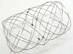 14本のステンレスワイヤーの輪で構成されたパラボーラスは、さまざまな形に変化します。柔軟によく動き、美しい形を次々につくることができます。遊び終わればコンパクトにたためます。
